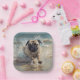 Add a splash of joy and personality to your next gathering with this playful paper plate featuring a happy pug running along the beach! Designed in rich, sun-soaked tones, this charming scene captures the carefree spirit of summer and the love of man’s best friend. Whether you're hosting a dog-themed birthday party, a beach picnic, a summer BBQ, or a casual family get-together, these plates are the perfect addition to your table setting. The design includes a customisable text, allowing you to add your own text—perfect for highlighting a name, special occasion, or fun message.