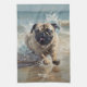 Turn your kitchen into a sunshine-filled seaside escape with this delightful kitchen towel featuring a happy pug frolicking at the beach. This lively design captures the spirit of summer fun and the irresistible charm of man’s best friend, making it a standout addition to your cooking space or coastal-themed home décor.