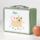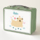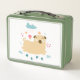 This is a standard metal lunchbox that appears to work just fine. We designed this box ourselves with an uploaded photo and custom text on the front and back. It looks absolutely beautiful except the front of the lunchbox is not centered like it shows in the photo. The print borders don't align with the inset flat part of the box where the preview photo online showed it perfectly centered in there. The back looks nice and centered though.