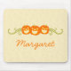 Happy Pumpkin Swirls Halloween Mousepad featuring a trio of smiling carved pumpkins and a cascade of swirls and dots. This fun mousepad will give your workspace a charming bit of Halloween flair! Easy to customise, simply add the personalised text of your choosing. Fonts and text colours may be changed to suit your preferences and the design elegant may be moved/resized to accomodate more or less text.