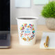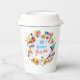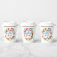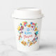 Happy Purim - White Paper Cups. Translation from Hebrew: Happy Purim! Purim Jewish Holiday poster with stars of David, traditional Hamantaschen cookies, gragger toy - noisemaker, balloons, musicians, masks, Purim basket on festive colorful background. Wish a great Purim celebration. Carnival, Masquerade, Festival, Kids Party, School Party, Kindergarten, Classroom, Bar Mitzvah, Bat Mitzvah, Baby Shower, Birthday Carnival Israel. Crafts & Party Supplies > Party Supplies > Tableware > Paper Cups