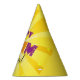 Happy Purim Vintage Yellow Pattern Decoration for Party Hat. Happy Purim! Purim Jewish Holiday pattern with Vintage Decorative Ornament, Purim gifts basket, Stars of David, traditional Hamantaschen cookies, gragger toy noisemaker, balloons, musicians, masks, Purim festive confetti background. "Wish a great Purim celebration!" Carnival, Masquerade, Festival, Kids Party, Israel. Crafts & Party Supplies > Party Supplies > Décor > Paper Party Hats. Trendy Festive Design