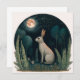 A happy rabbit sits in the moonlight in flowers and other plants with tall trees in the background.