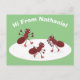 Happy red ants ice skating cartoon postcard