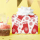 Cheerful red and white holiday party design. Warm red winter mittens and snowflakes. Please note that this design has a slight offset at the centre seam.