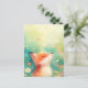 This enchanting postcard features a blissful red fox with its head tilted back in a moment of pure serenity. The artwork is rendered in a dreamlike watercolor style, utilizing a soft and luminous palette of warm orange, mint green, and golden yellow. The fox is surrounded by delicate spring wildflowers and shimmering light particles that create a magical, airy atmosphere. With its peaceful vibe and painterly textures, this piece captures the quiet beauty of nature. This postcard is a perfect choice for sending a cheerful hello, a sweet birthday wish, or a "thinking of you" note to any wildlife lover.