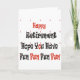 Greeting Card for a person that is going to Retire. Happy Retirement Hope you have Fun" Black and Red letters.