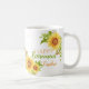 An elegant yellow sunflower Happy Retirement mug comprising of a white background decorated with a pretty floral watercolor yellow sunflower with a bee and strings of lights. The perfect stylish gift to give to someone on their retirement. Personalise with a name . Makes a perfect gift for office staff, coworker or boss, teacher and anyone really.