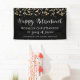 Celebrate a retiring employee with this personalised banner sign in black, gold and white with gold confetti, streamers and lights, a modern, chic calligraphy script typography title HAPPY RETIREMENT and personalised with their name, years of service and company or organisation name or other custom text. Contact the designer via Zazzle Chat or makeitaboutyoustore@gmail.com if you'd like this design modified or help with another colour scheme, on another product or would like coordinating items.
