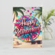 A vibrant beach scene unfolds, showcasing a colorful retirement celebration. The camera performs a sweeping aerial shot, capturing the festive atmosphere with confetti swirling in the air. The focal point is a large, cheerful 'Happy Retirement' sign, surrounded by tropical palm trees and seashells scattered on the sandy beach. As the camera glides closer, it reveals a pair of stylish sunglasses resting on the sand, enhancing the relaxed vibe. The lighting is bright and cheerful, evoking a sense of joy and freedom, with a warm color palette that complements the beach setting.