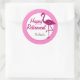 Happy retirement sparkly pink flamingo Custom text Classic Round Sticker.