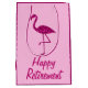 Happy retirement sparkly pink flamingo Custom text Medium Gift Bag