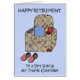 A comfortable looking chintz patterned armchair with a pair of red and white slippers in front of it. The words 'Happy Retirement to a special Air Traffic Controller' accompany the image.