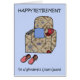 A cartoon armchair complete with television remote control, slippers and mug, set against a blue coloured background. The words 'Happy retirement to a wonderful Coast Guard' accompany the image.