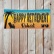 Wish a happy retirement with a beach theme: palm tree, beach chair, sunglasses, a tiki font, and a blue and gold blend background. Edit the name to your guest of honour. Great for someone who loves the beach or is retiring to Florida, or just for a fun retirement party theme.