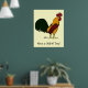 This happy cartoon bantam rooster is having a good day and he wants to let all of you know it!
