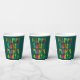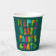 Add some St. Patrick's Day cheer to your next party with these paper cups. They feature the fun message HAPPY SAINT PADDY'S DAY in bright modern hand-painted lettering along with a couple of shamrocks. The message in green, yellow, orange, magenta and bright blue is set against a dark teal background.