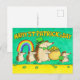 This card features cute animals, hedgehogs, which gathered to celebrate St. Patrick's Day with shamrocks, a rainbow, a pot of gold, and of course a lot of green everywhere.