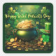 Happy Saint Patrick's Day Pot of Gold Coins Square Sticker