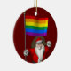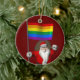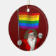 Happy Santa Claus With Gay Pride Rainbow Flag Ceramic Ornament