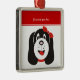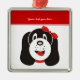 Happy silly puppy custom ornament, featuring a silly puppy with red bow on it’s head.