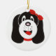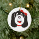 Happy silly puppy custom ornament, featuring a silly puppy with red bow on it’s head.
