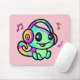 Happy smiling baby chameleon with headphones. mouse pad