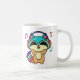 Happy smiling baby racoon with headphones listening to music. Kawaii style.