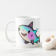 Happy smiling baby shark surrounded by bubbles. Kawaii style.