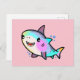 Happy smiling baby shark surrounded by bubbles. Kawaii style.