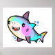 Happy smiling baby shark surrounded by bubbles. Kawaii style.