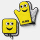 Happy Smiling Friendly Cartoon Oven Mitt & Pot Holder Set