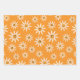 Happy smiling retro white flowers pattern wrapping paper sheet