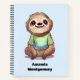 Spiral notebook with an adorable illustration featuring a happy looking sloth wearing a green t-shirt. Sitting cross-legged looking relaxed.
