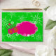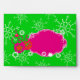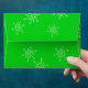 Our Happy Snowman Christmas holiday envelope perfectly matches our Happy Snowman holiday greeting card, postage stamps, return address labels, and stickers! Features a bright green background with lots of white snowflakes and with a cute snowman in an orange and pink winter hat and scarf on the inside flap. The front features a bright pink banner where you can write your recipient's address, colourful ornaments and and more white snowflakes.
