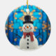 Celebrate the season with cheerful charm. This Happy Snowman Christmas Ornament features a joyful snowman design set against a rich blue faux stained glass background, creating a luminous, wintery look without the fragility of real glass.