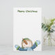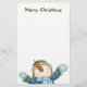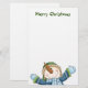 Fun Christmas stationery done in white, with cute graphics of a smiling snowman all dress for winter, decorating the bottom. Custom green text, at the top of the stationery, reads Merry Christmas and can read what you want. Customise to add text to this this stylish holiday letter paper, or hand write your Christmas letter. Matching Happy Snowman Christmas greeting card, envelope, stickers, and stamps are available.