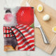 cute happy snowman character with bird vintage Christmas kitchen towel