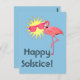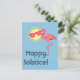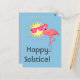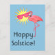 Celebrate the longest day of the year with this bright whimsical summer solstice postcard featuring a cheerful pink flamingo nuzzling a smiling sun in oversized hot pink sunglasses. Set against a sky blue background with “Happy Solstice!” in stylised retro lettering, this playful postcard design captures the joy and warmth of summer solstice. Perfect for sending seasonal greetings, marking a nature-based celebration, or connecting with others who observe the turning of the wheel of the year. A fun and lighthearted way to honour the sun’s peak for solstice observers, nature lovers, yoga and wellness communities, and anyone who embraces seasonal transitions.