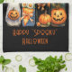 Happy "Spooky" Halloween Pumpkins Black Cat Ghosts Tea Towel