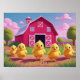 Happy Spring Chicks in Barnyard Poster