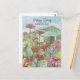 Happy spring in your new home featuring a house painted in soft sage green with a vibrant zinnia garden in the front yard hand drawn with ink and painted with watercolor in cheerful shades of orange, pink, and red. You can edit the text to fit your needs and add your business details on the back.