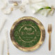 Happy St. Patrick Shamrock Gold Look Clovers on Green Background Irish Pattern Elegant Party Paper Plates for St. Patrick's Day