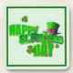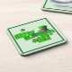 Set of 6 cork-back, high-gloss plastic coasters with an image of the sentiment “Happy St. Patrick’s Day” printed in big green letters, a green leprechaun’s hat with a purple hat band, and shamrocks here and there on light green. Green border. See matching sandstone coaster, paper coaster and napkins. See the entire St. Patrick’s Day Coaster collection in the FOOD/BEV | Coasters section.