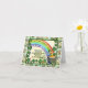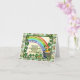 A rainbow, four leaf clovers, a pot of gold and a leprechaun add to the charm of this card.