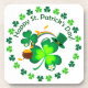 Unique and beautiful combinations of shamrocks with an Irish hat, a rainbow crossing towards a pot of gold, a circle of shamrocks, and the message of “Happy St. Patrick's Day!”