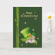Happy St. Patrick's Day. Funny Bulldog Wearing Leprechaun's Hat with Shamrocks design customisable Greeting Cards. Matching cards and gifts available in the Holidays / St. Patrick's Day Category of our Store.