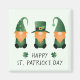This is a fun illustration of garden gnomes styled for St. Patrick's day. They feature four leaf clovers and a bright orange beard.