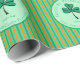 This good luck "Happy St. Patrick's Day" clover wrapping paper features a green and orange thin stripes pattern with a hand-drawn lucky green clover and 2 custom texts.