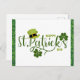 Wish your family and friends a happy St Patricks Day with this cute green shamrock and top hat postcard!